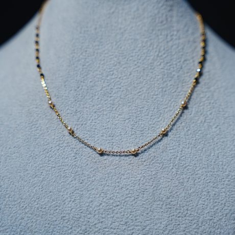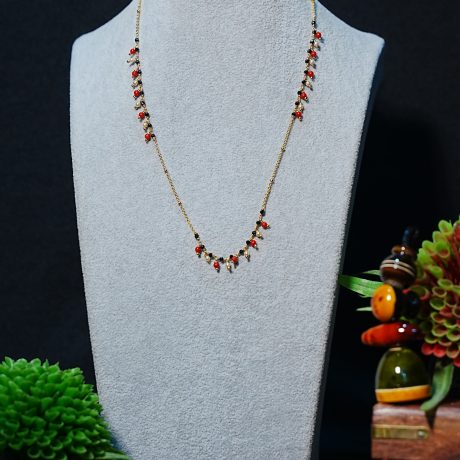Availability: In StockAwesome black beads chain with fresh white pearls hangings of 16 inch with 4 rings and up to 18 inches for adjustment.