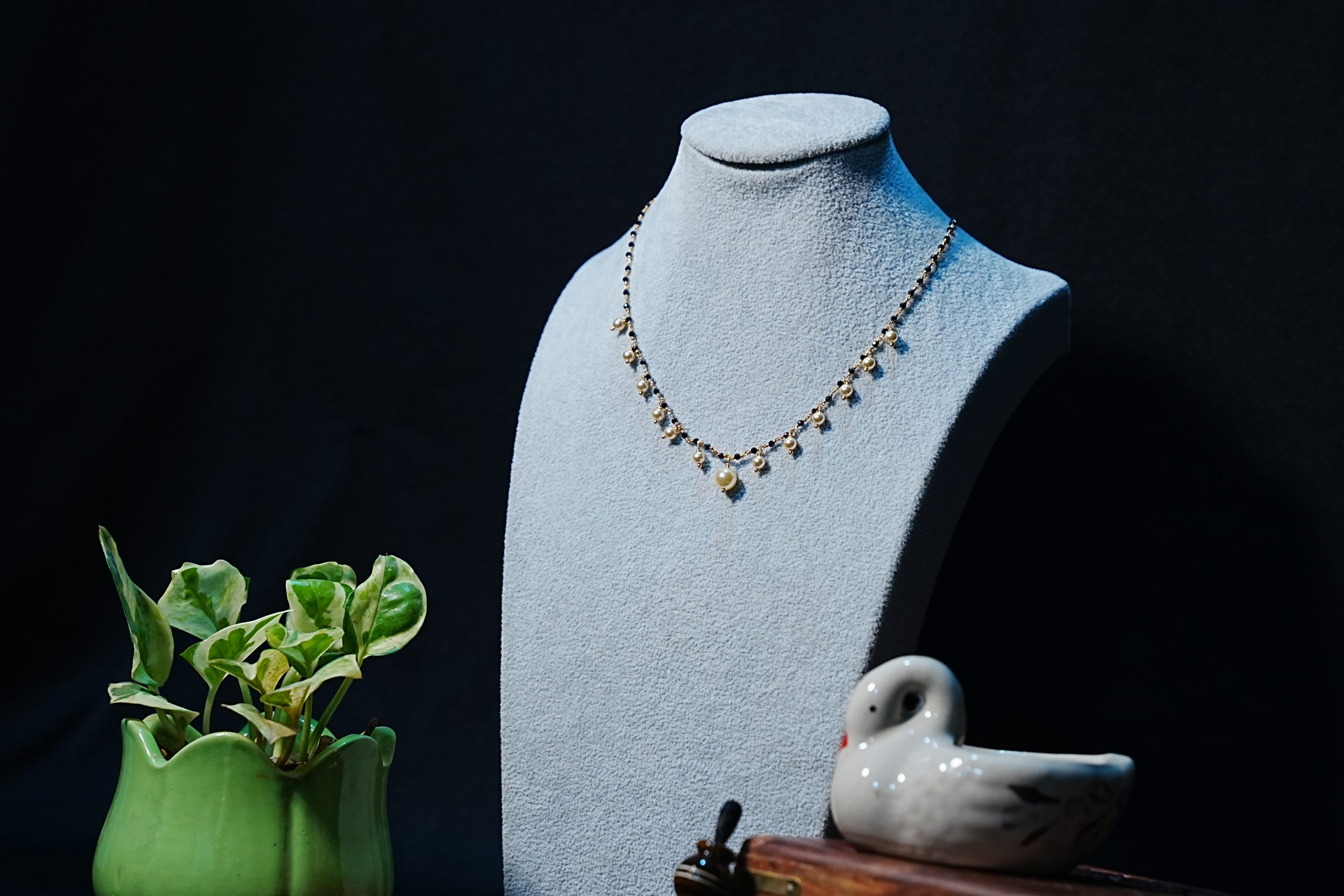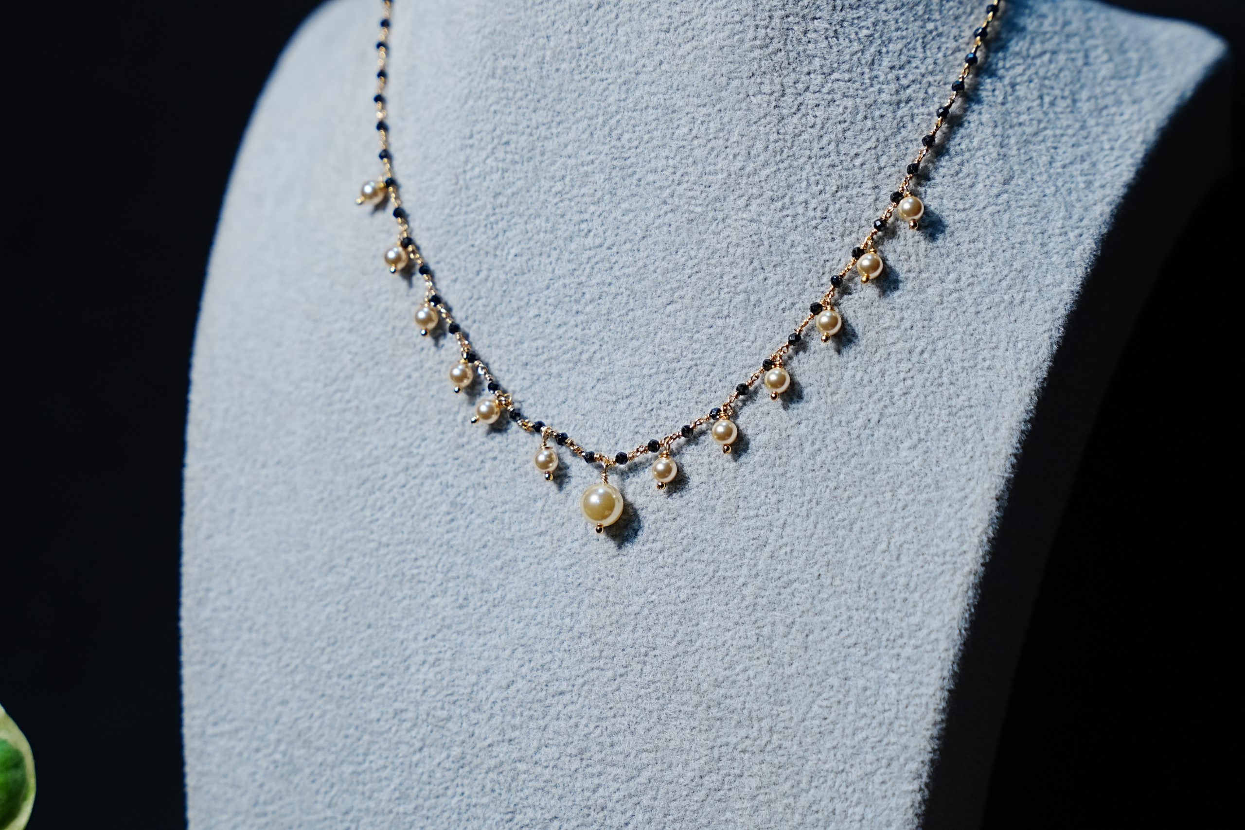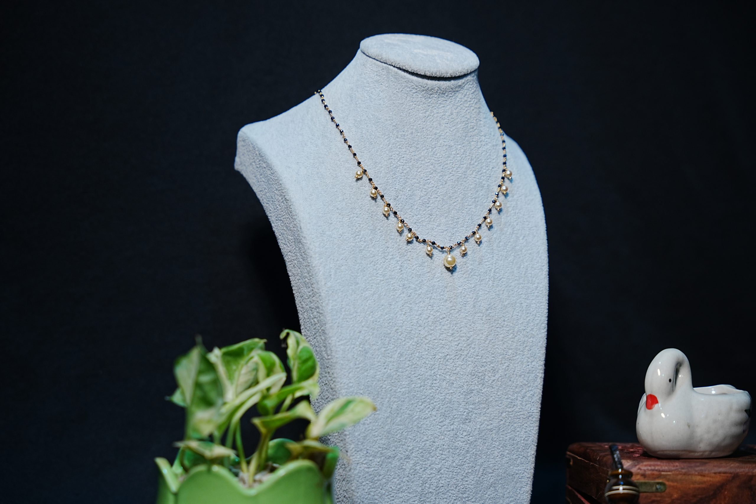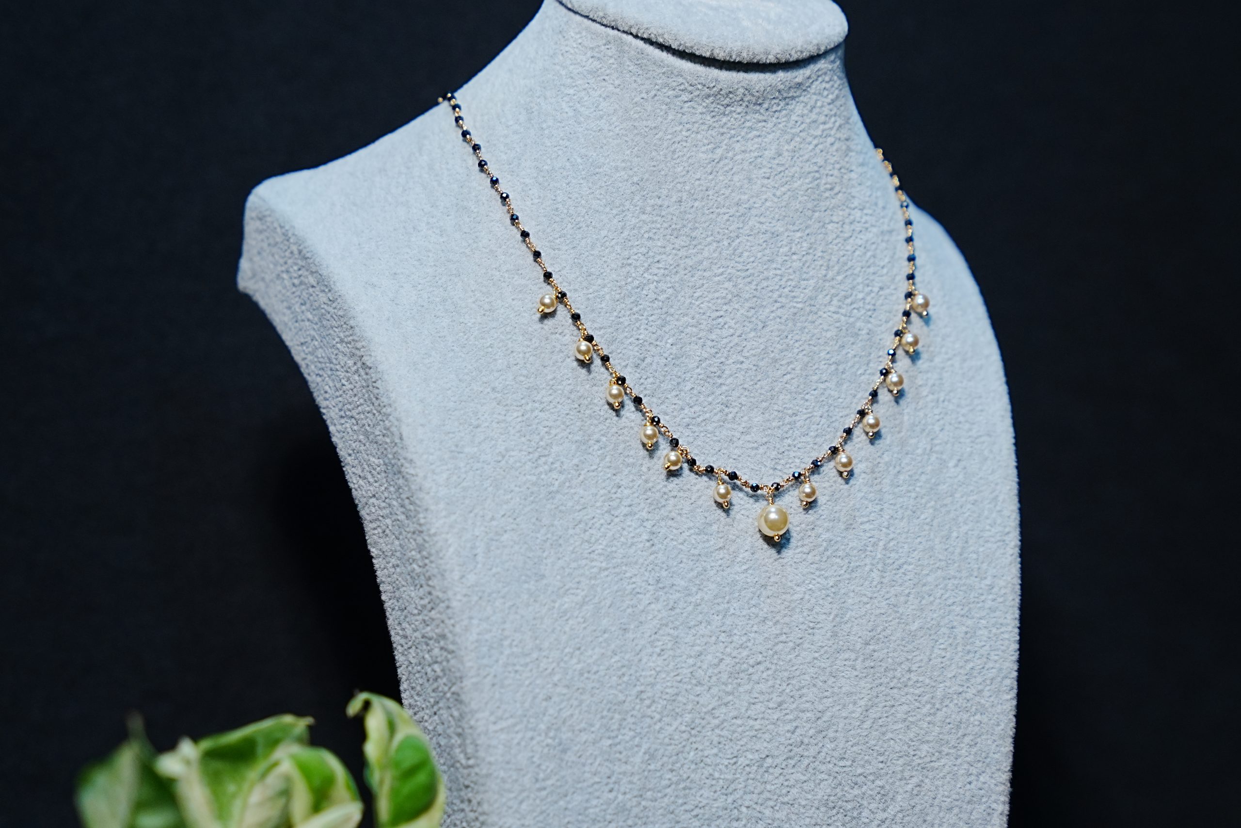 Awesome black beads chain with fresh white pearls hangings
