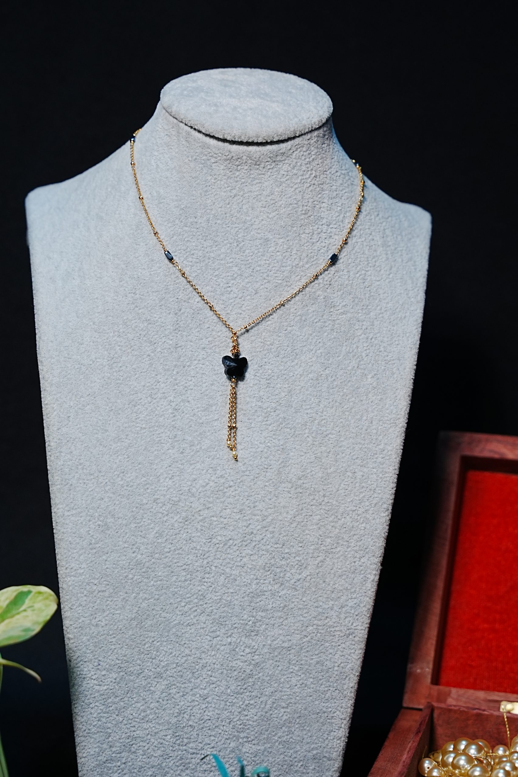 You're viewing: Fashioned black bead chain with hanging black butterfly 650.00
