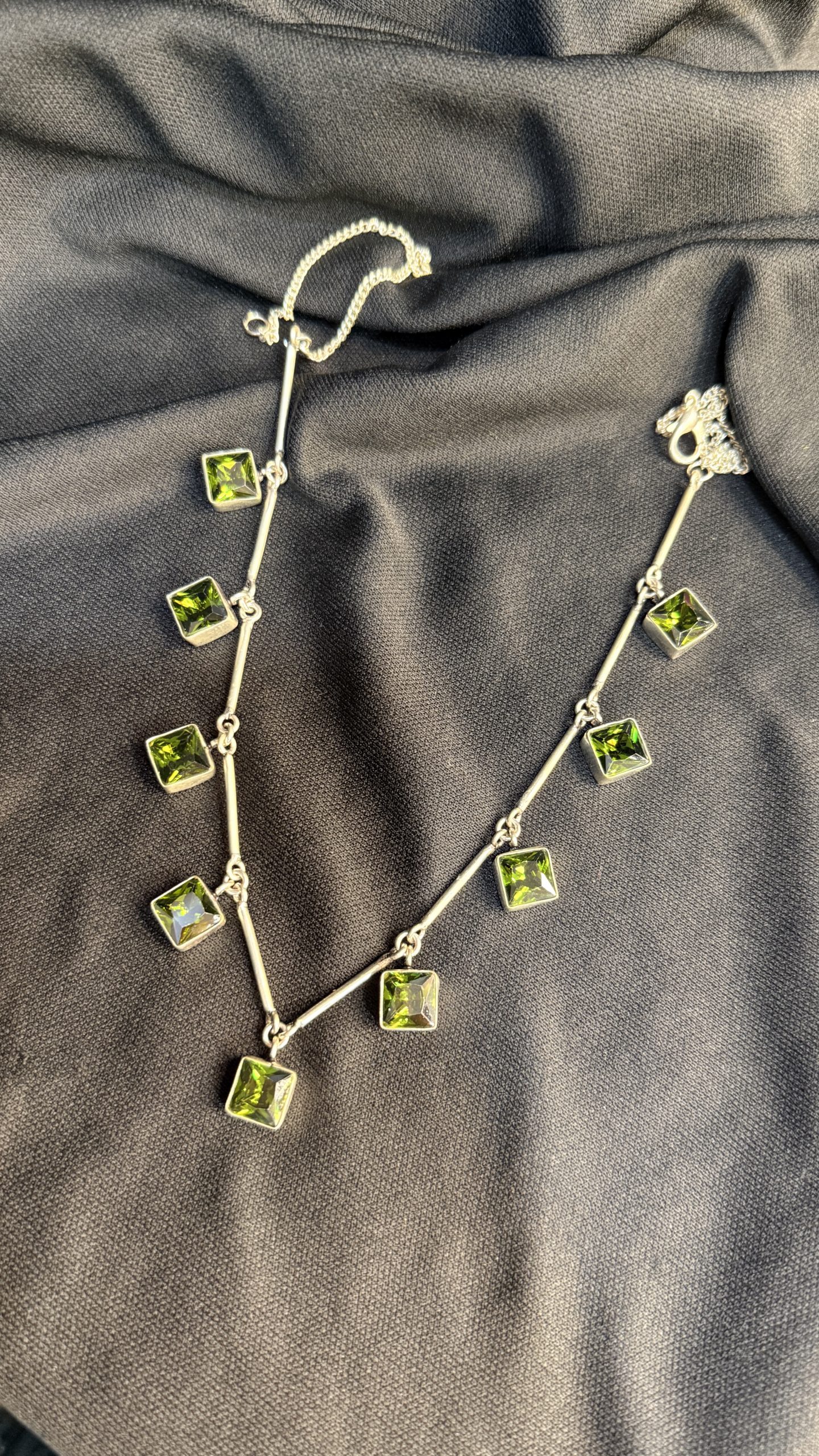 Green gemstone necklace without earrings